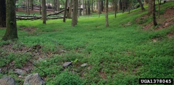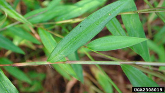 Japanese Stiltgrass (Microstegium vimineum ) was probably introduced to the U.S. as packing material in crates from China. It can grow in a variety of habitats where it forms dense stands and crowds out native species ( from USDA Plant Profiles)